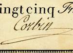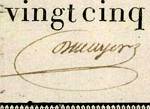 On remarque à gauche la découpe de la promesse de mandat obtenue lors de sa séparation avec la souche.